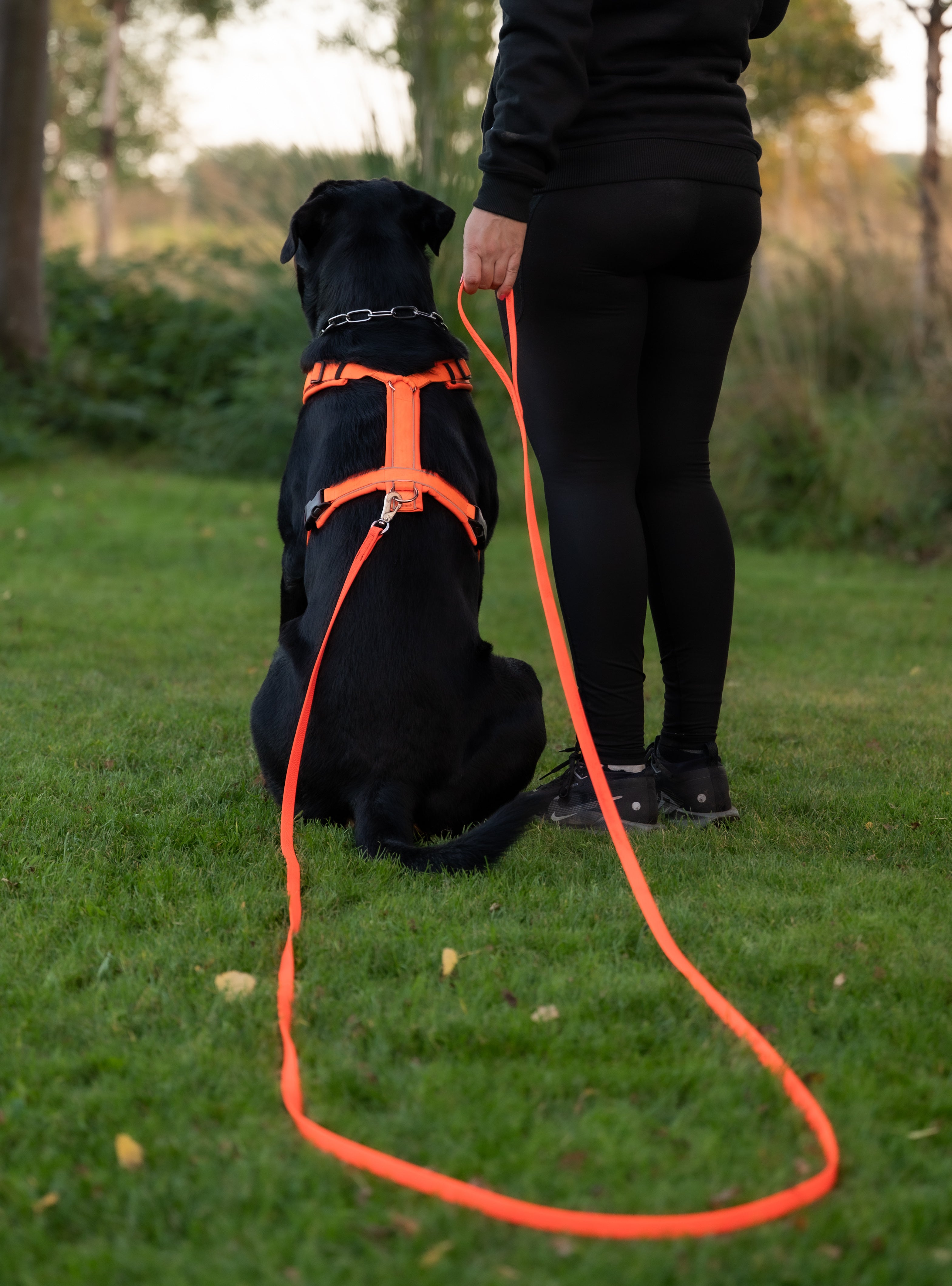Vom Tragegefühl für Hund und Mensch ist es mit Leder vergleichbar, fühlt sich geschmeidig und flexibel an und liegt gut in der Hand. Im Unterschied zu Leder ist es wasserfest, saugt sich nicht mit Wasser voll und wird auch bei Kälte nicht steif – perfekt für alle Jahreszeiten!