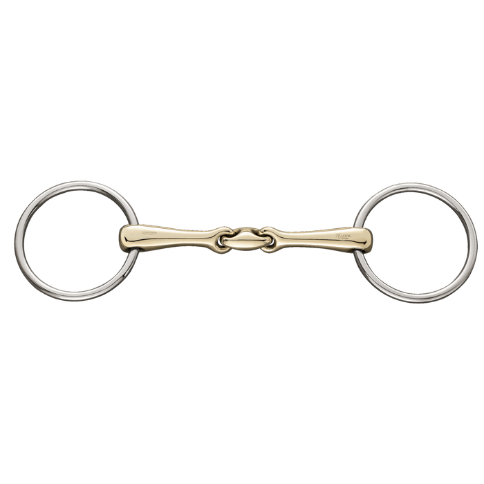Die klassische doppelt-gebrochene Wassertrense eignet sich ideal als Unterlegtrense oder auch als Alltagsgebiss für die vielfältigsten Einsatzbereiche.