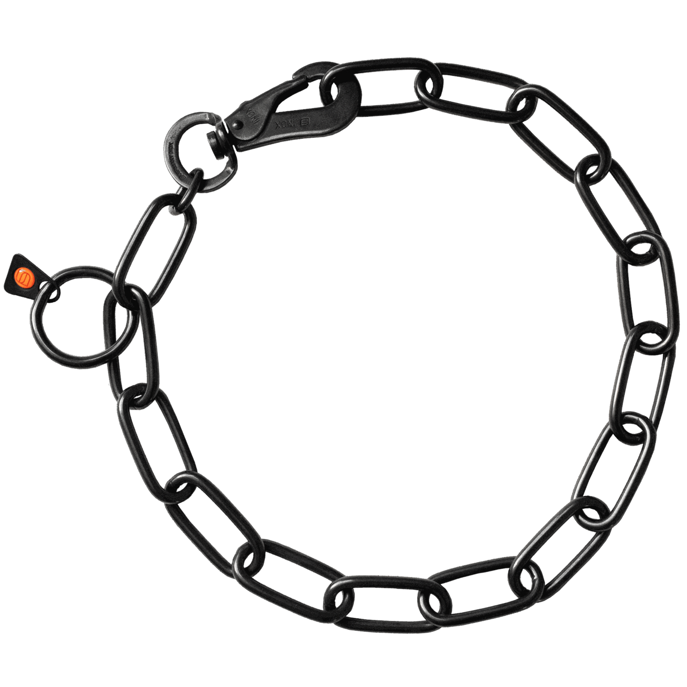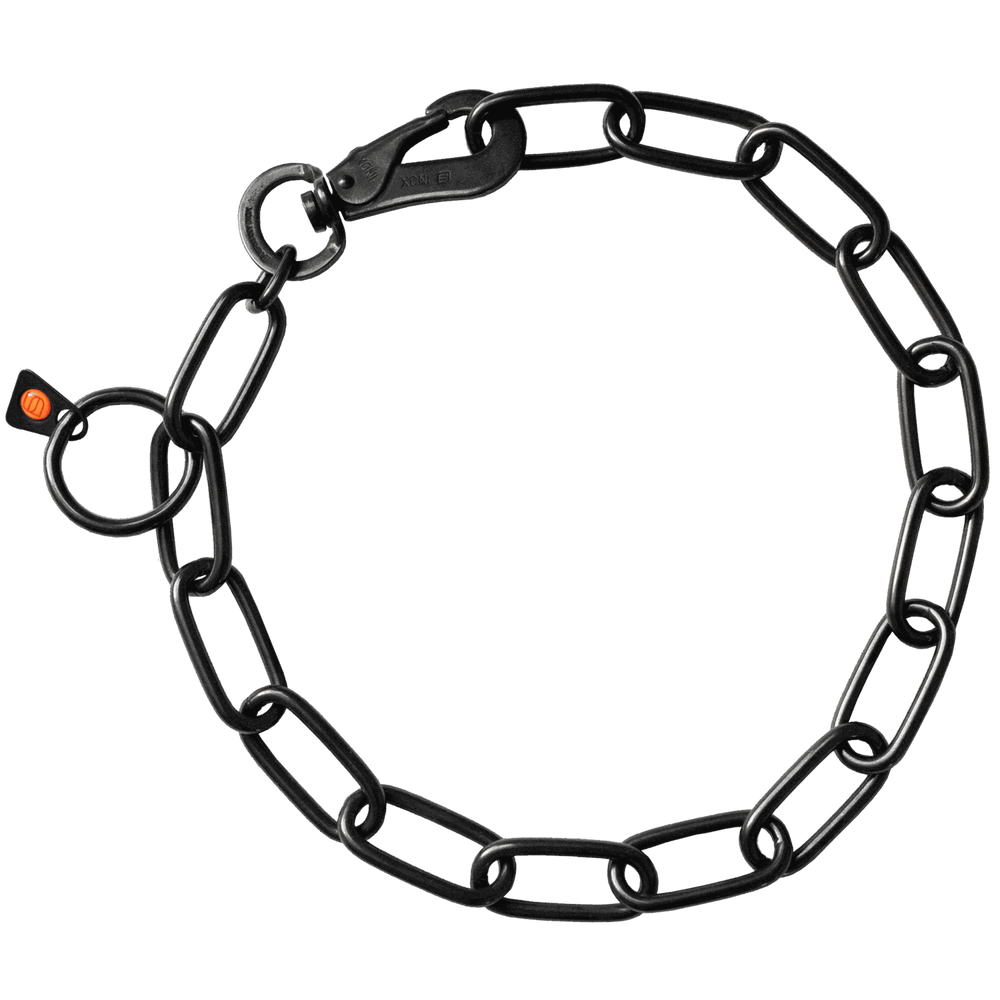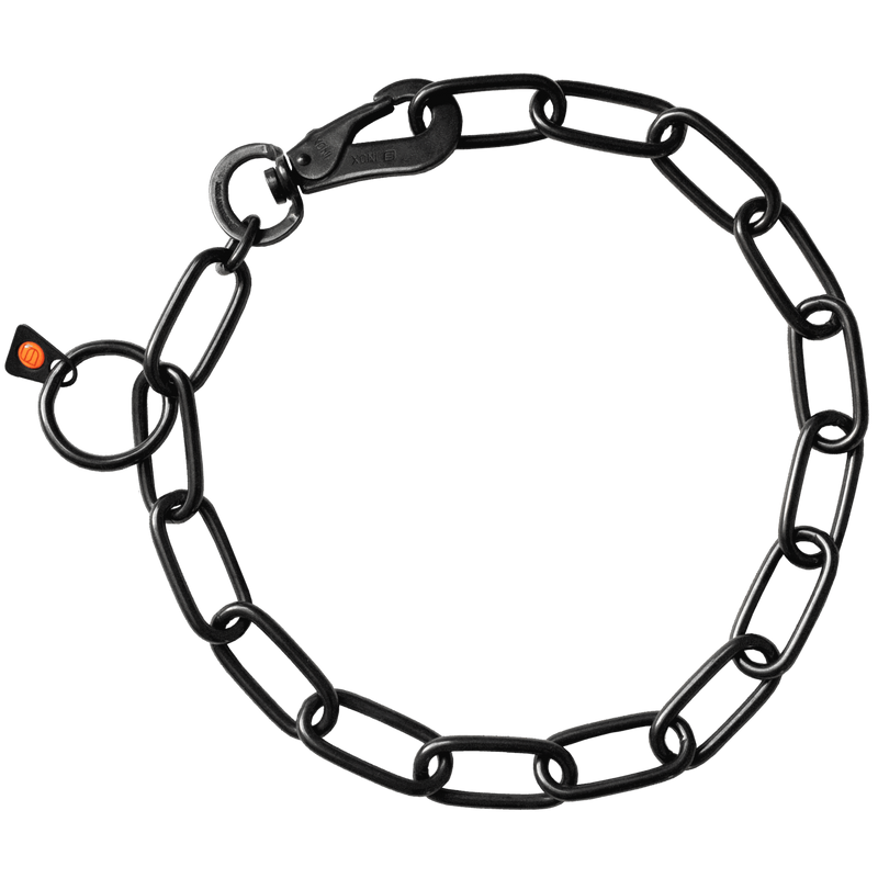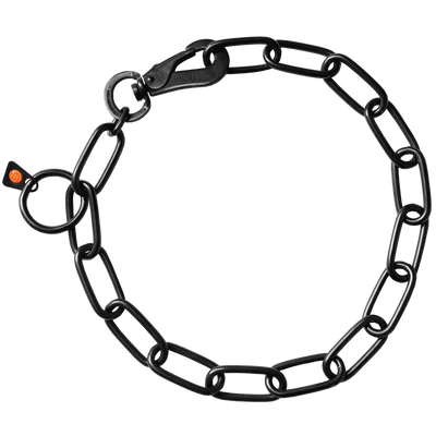 Collar, long links, adjustable - with SPRENGER hook - Stainless steel black, 4.0 mm