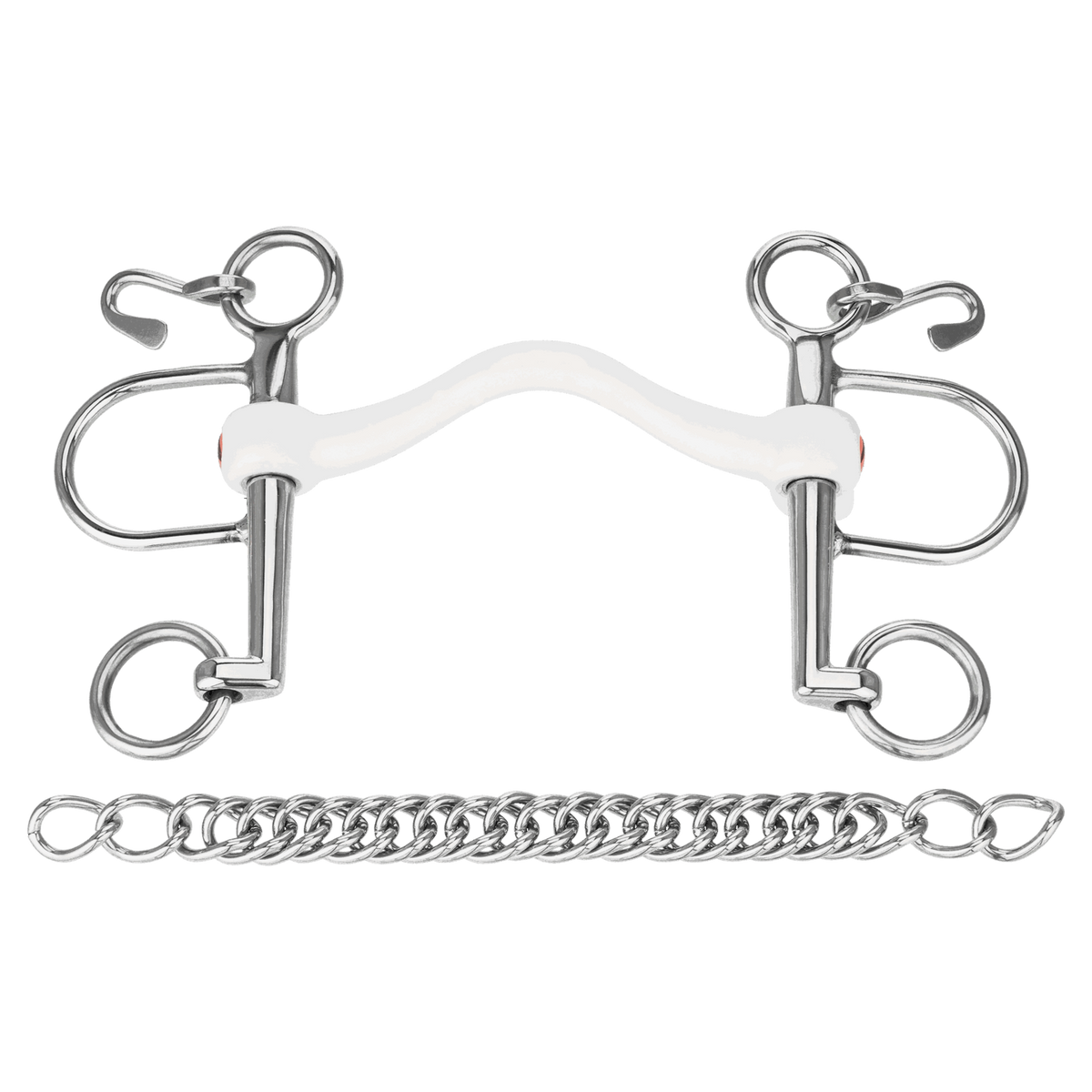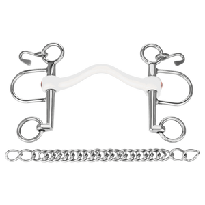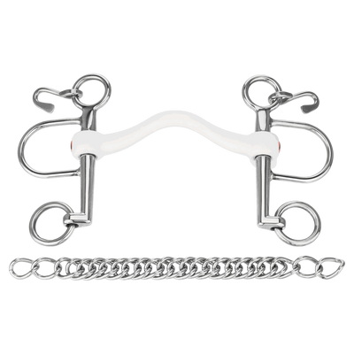 The bit is often used in combination with bit converters. If the rider and horse are already highly trained, the use of two pairs of reins is recommended: this allows the leverage to be applied as sensitively as possible. The Pelham is used together with a curb chain. If this allows an angle of up to 45° between the lower jaw and the mouth, it limits the pressure on the neck.