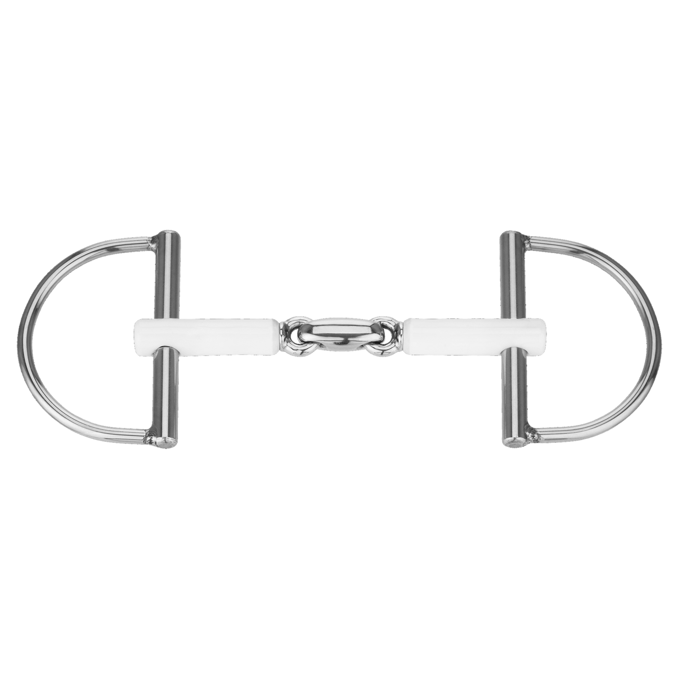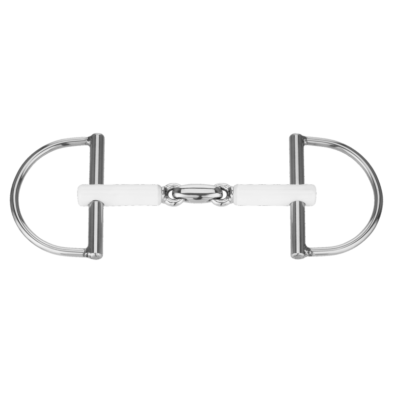El NATHE CONTROL es un bocado doblemente articulado que, a primera vista, no se diferencia de los bocados NATHE dobles articulados convencionales. Sin embargo, se trata de un bocado de corrección y entrenamiento que se bloquea a partir de un determinado ángulo y actúa de forma similar a una barra. En la práctica, este efecto se produce de forma muy suave. Solo cuando se tira con más fuerza de las riendas se produce un efecto más intenso y eficaz, ya que la embocadura se convierte en una barra. Gracias a las partes laterales fijas, la ayuda de las riendas se transmite directamente a la lengua y la mandíbula inferior del caballo. Además, enmarcan al caballo lateralmente y garantizan una posición tranquila en la boca.