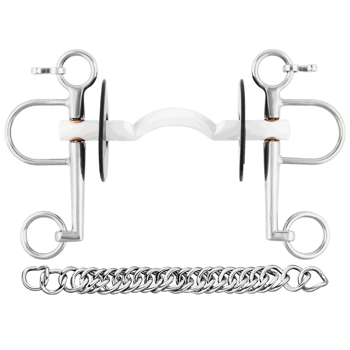 Thermoplast is a high-quality bit material that supports the satisfaction and willingness to perform of sensitive and mouth-sensitive horses. In addition to excellent compatibility, it is food-safe and free from plasticizers and solvents. The thermoplastic bits are also hypoallergenic. The smooth surface means there is no eraser effect. Thermoplastic is temperature-resistant and dimensionally stable. The steel core in the standard bits (except for size 110mm) provides additional safety. The side parts are made of high-quality stainless steel. Made in Germany. No guarantee on bite and tooth marks.Features