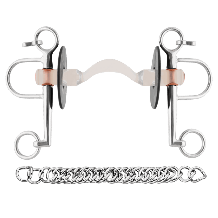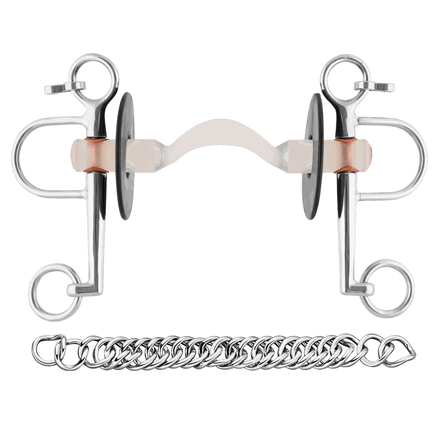 This bit's tongue clearance and short tongues provide maximum comfort. In particular, the sensitive centre of the tongue is relieved. On this model, the bit guards also help to protect the corners of the mouth.