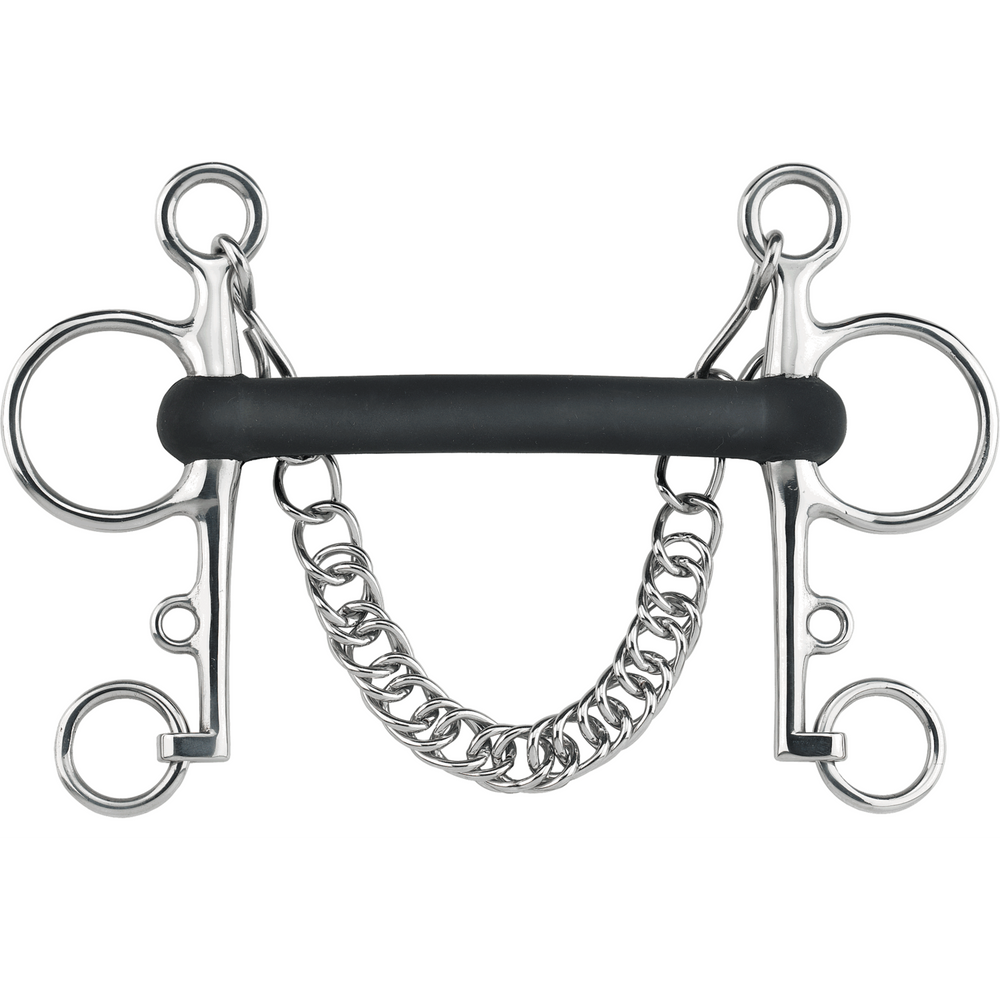 Compared to metal bits, rubber bits are softer and should not get in contact with the teeth of your horse.