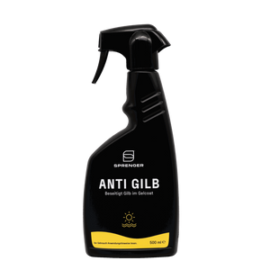 Anwendung: Vor Gebrauch gut schütteln. Schutzbrille und Handschuhe aus Nitrilkautschuk werden empfohlen. SPRENGER Anti Gilb direkt auf die zu reinigende Oberfläche oder auf einen feuchten Schwamm sprühen und gleichmäßig verteilen. Das Gel so lange einwirken lassen, bis der Fleck verschwindet (bis zu 60 Minuten möglich, Außentemperatur und Luftfeuchtigkeit beachten!), anschließend gründlich mit frischem Wasser abspülen. Bei extrem hartnäckigen Flecken kann eine mehrmalige Anwendung, längere Einwirkzeit oder vorsichtiges Schrubben nötig sein.