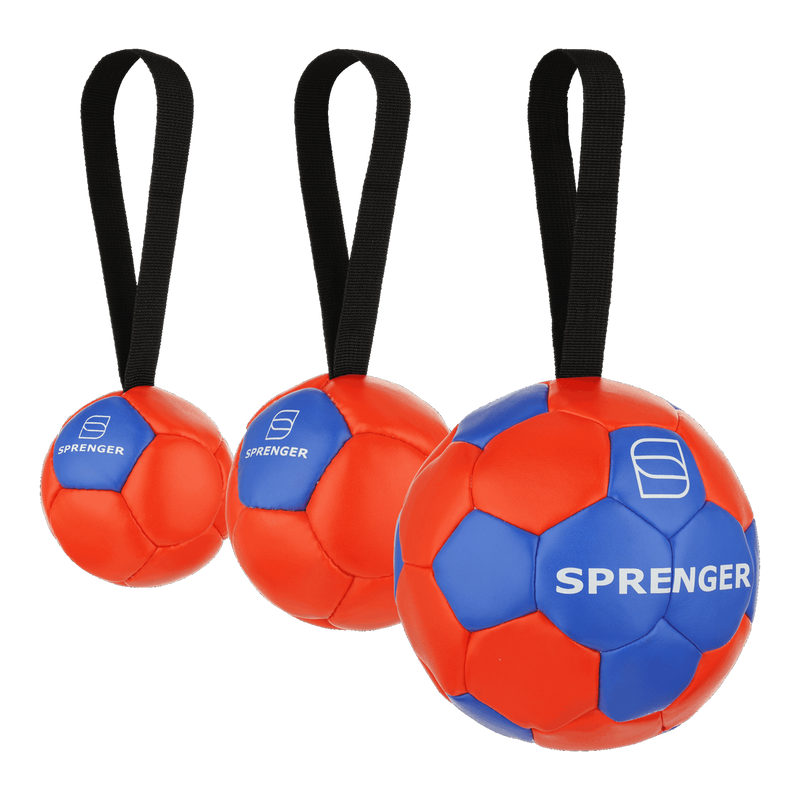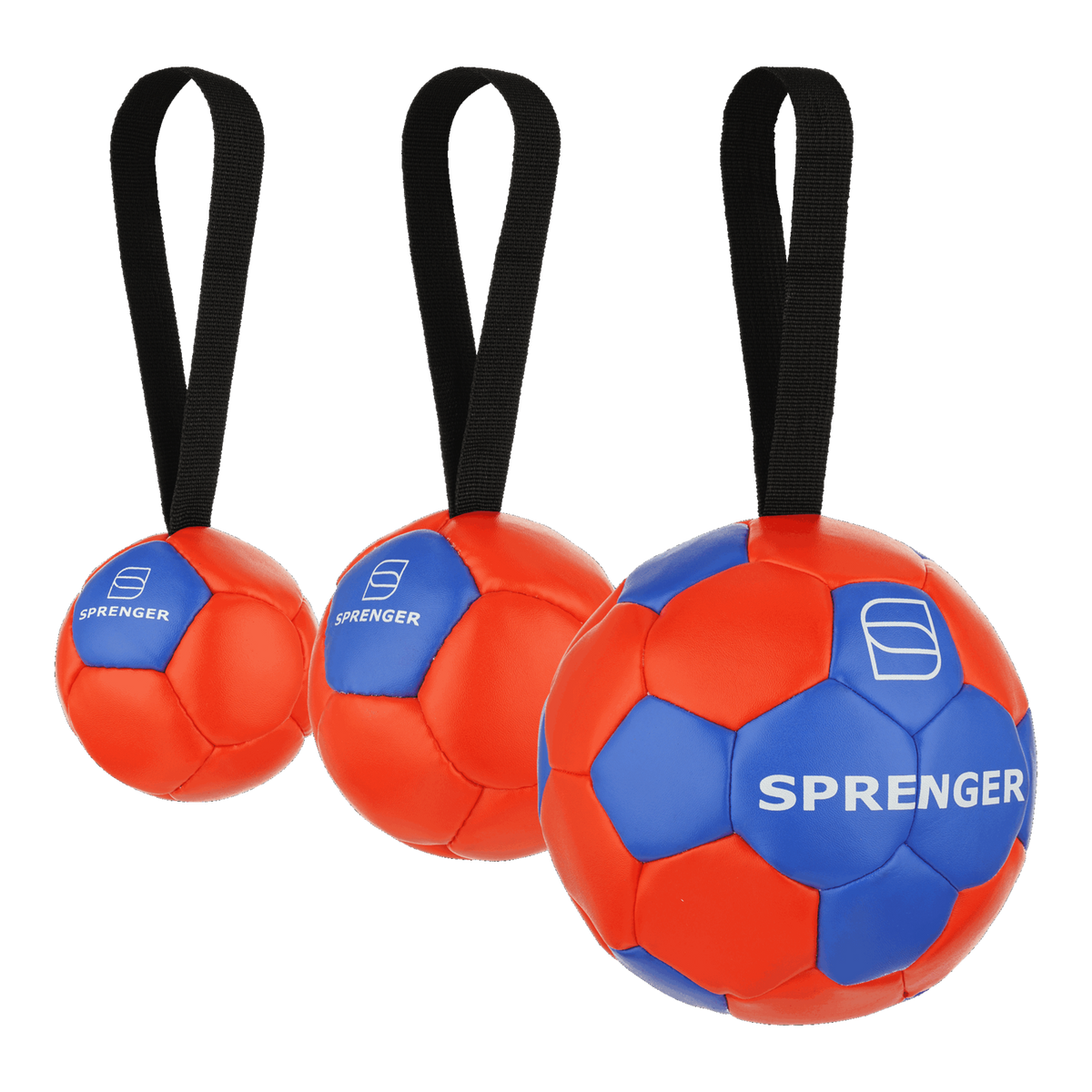 El logotipo de SPRENGER de alta calidad se encuentra en la parte delantera y trasera de la pelota. La pelota de cuero vegano está disponible en tres prácticos tamaños: 10 cm, 12 cm y 18 cm, para que haya una opción para cada tamaño de perro.