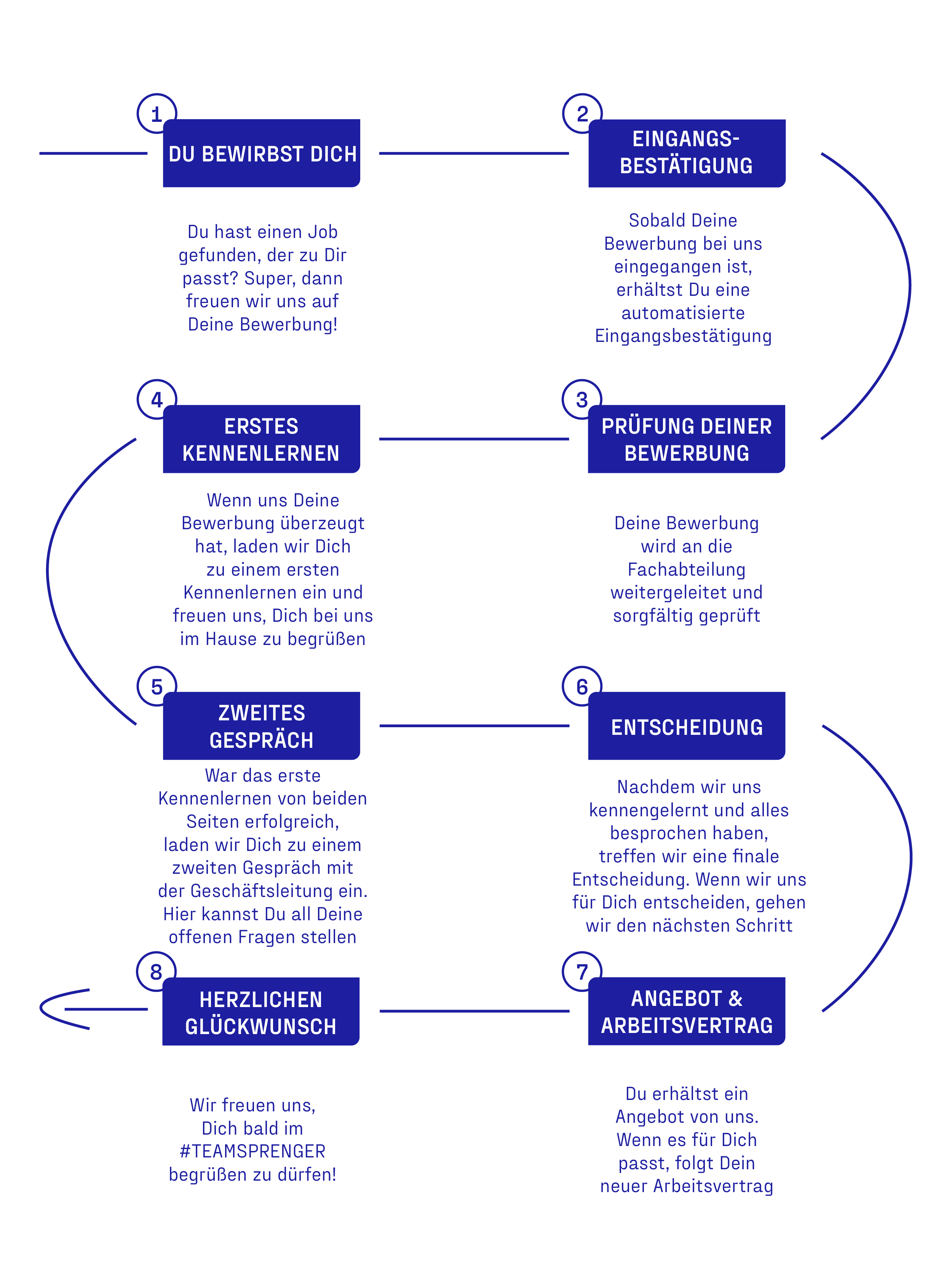 Nachdem Du Deine Bewerbung abgeschickt hast, erhältst Du von uns eine Eingangsbestätigung und wir werden Deine Unterlagen sorgfältig prüfen. In der Regel erhältst Du innerhalb von 7 Werktagen eine erste Rückmeldung von uns, entweder in Form einer Einladung zum Vorstellungsgespräch oder einer Mitteilung, dass wir uns für einen anderen Bewerber entschieden haben.