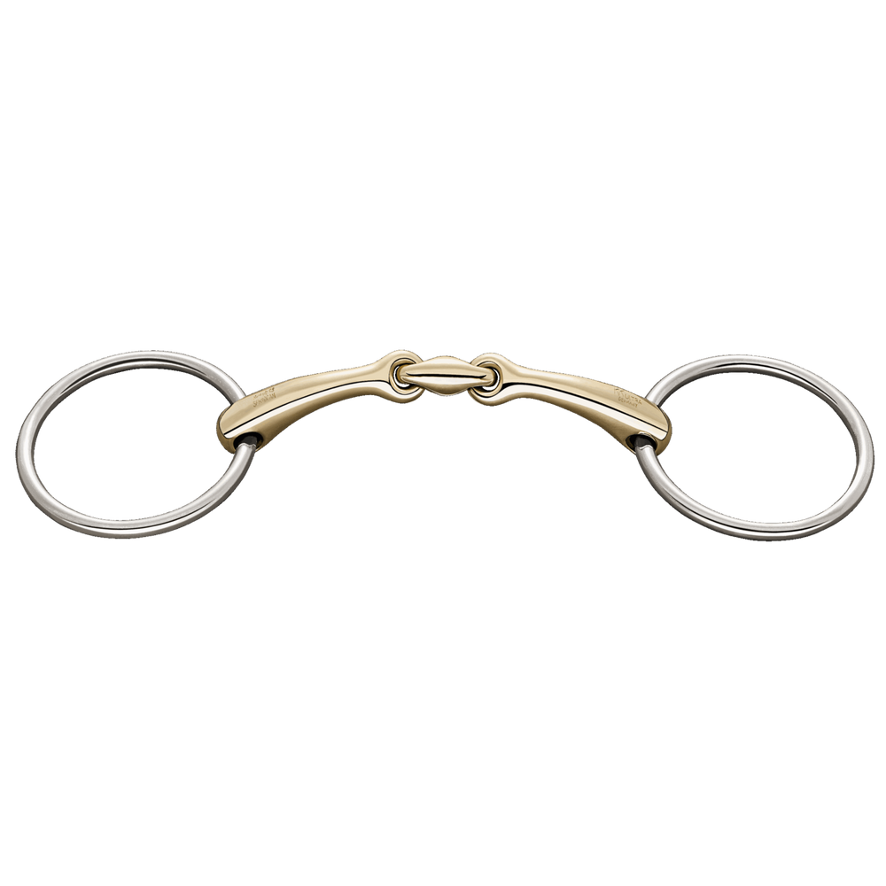 Die klassische doppelt-gebrochene Wassertrense ist ein ideales Alltagsgebiss und eignet sich für die vielfältigsten Einsatzbereiche. Auch für sensible Pferde ist es eine gute Wahl, um die vertrauensvolle Anlehnung zu erarbeiten und zu fördern.