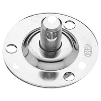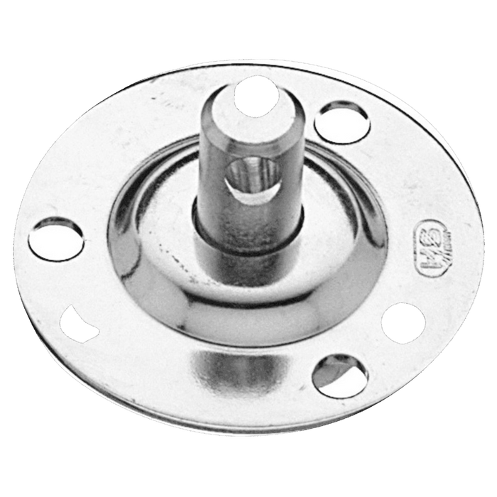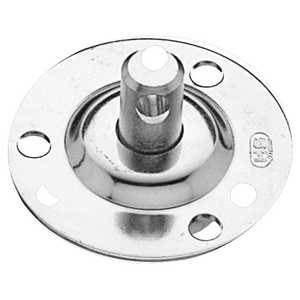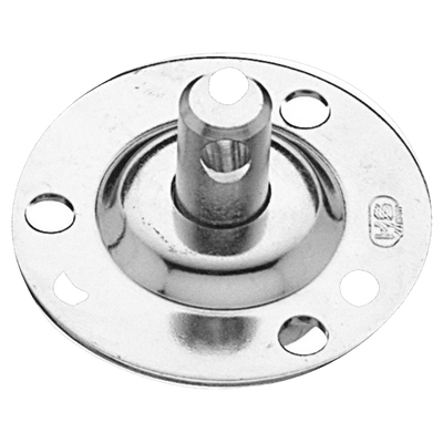 Runde Edelstahl-Grundplatte mit 360°drehbarem Bolzen, vielfältige Einsatzmöglichkeiten und einfache Befestigung dank dreier Bohrlöcher.