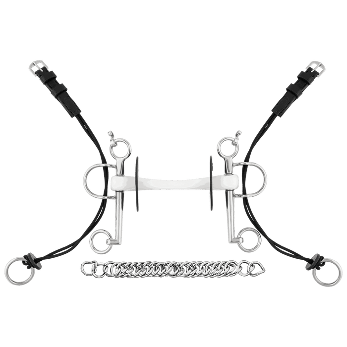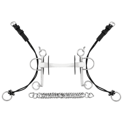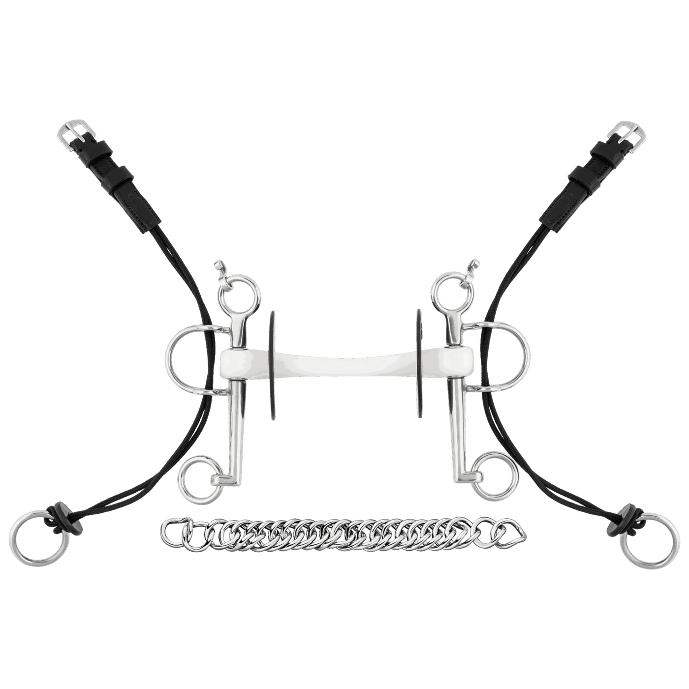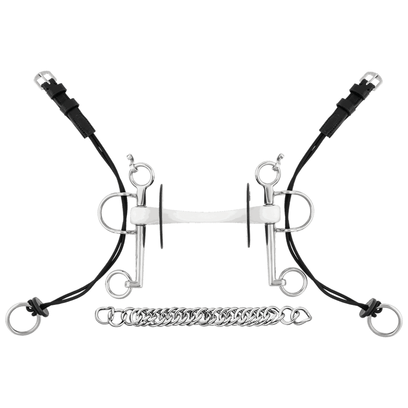 Durch eine Kinnkette wird die Hebelwirkung begrenzt. Gleichzeitig ermöglichen verschiedene Verschnallvariationen unterschiedlich starke Hebelwirkungen, sodass es möglich ist, individuell auf jedes Pferd einzugehen.