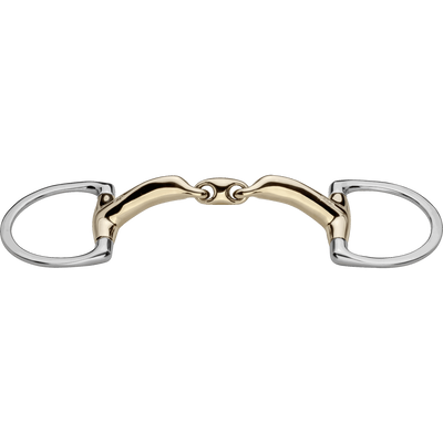 Das doppelt gebrochene Olivenkopfgebiss mit D-förmigem Ring wirkt leicht begrenzend und liegt ruhig im Maul. Gleichzeitig trägt es zur Schonung der empfindlichen Maulwinkel bei. Das Modell ermöglicht eine direkte Übertragung der Zügelhilfe.