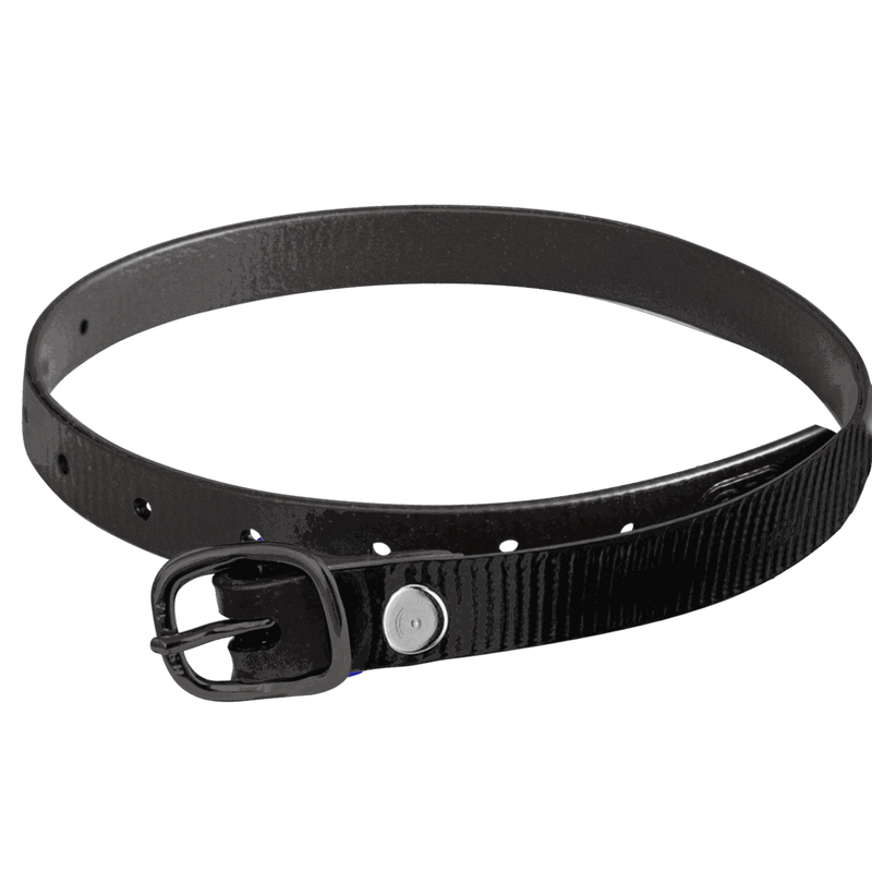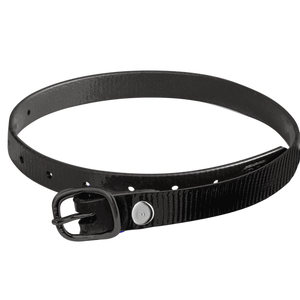 Sporenriemen - 45 cm, BioThane® Glossy schwarz, Schnalle schwarz