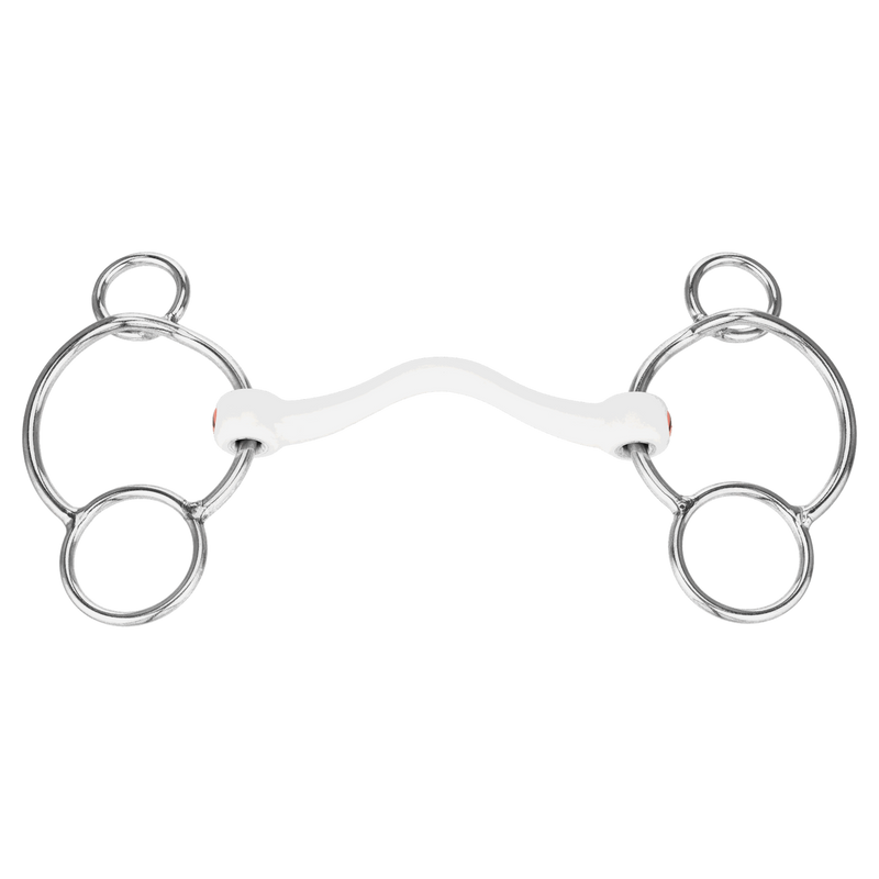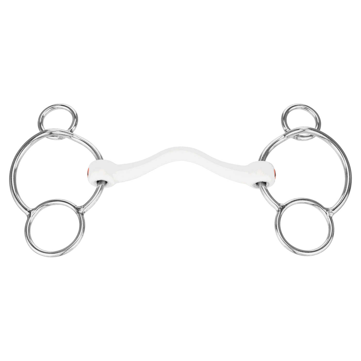 The 3-ring bits offer four different fastening options for varying degrees of leverage on the neck. Depending on the fastening, it exerts pressure on the tongue, neck, and lower jaw. It is particularly suitable for horses with a pronounced forward drive and provides control for horses that tend to evade the aids upwards.